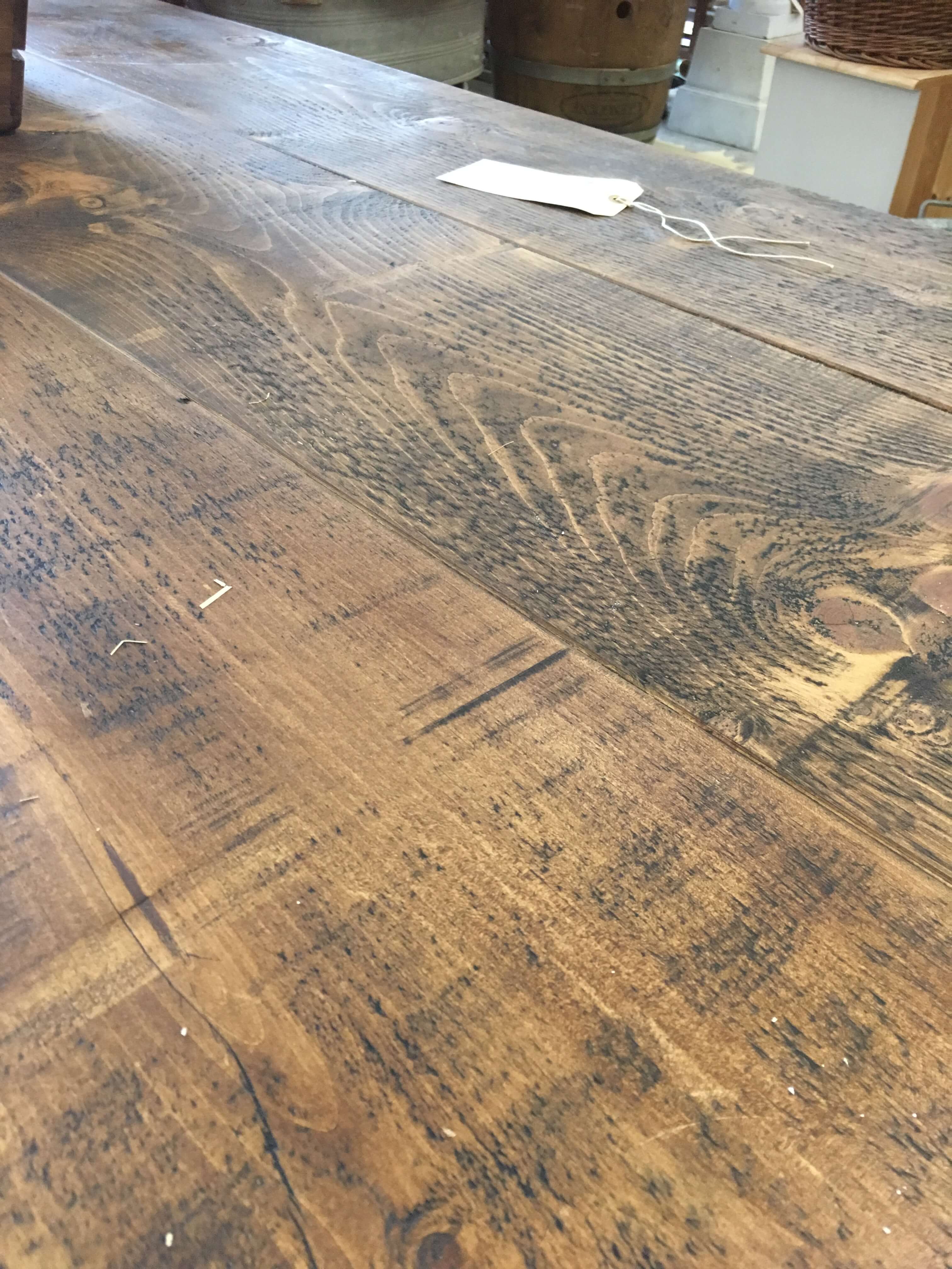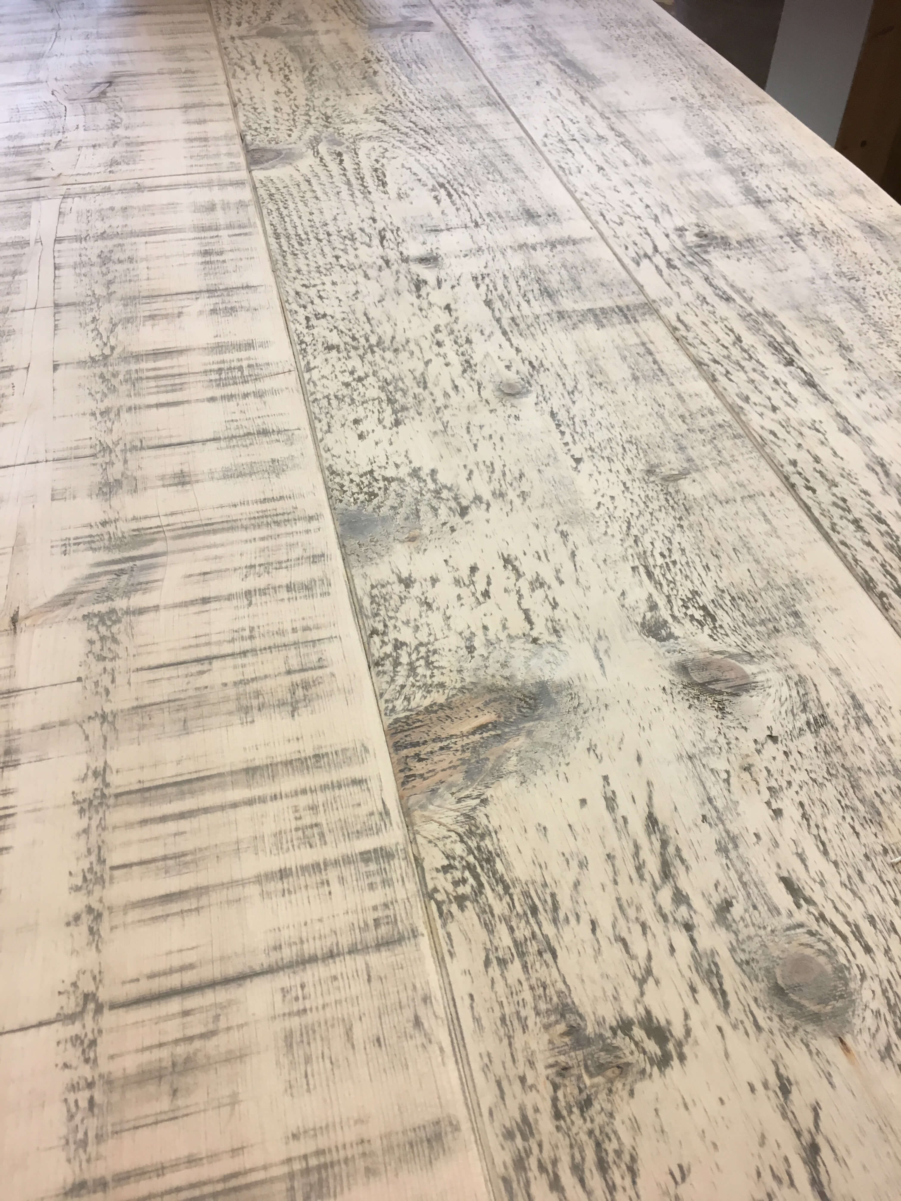 Beautiful timeless, dining table, a classic design. This French farmhouse style dining table is made from reclaimed timber and has a painted base. The legs taper towards the bottom. We can get these in a number of sizes from 4-7 foot in length, the width varies slightly due to available timbers. They can be done with a stripped/scrub top or waxed to a darker colour, see gallery pictures.