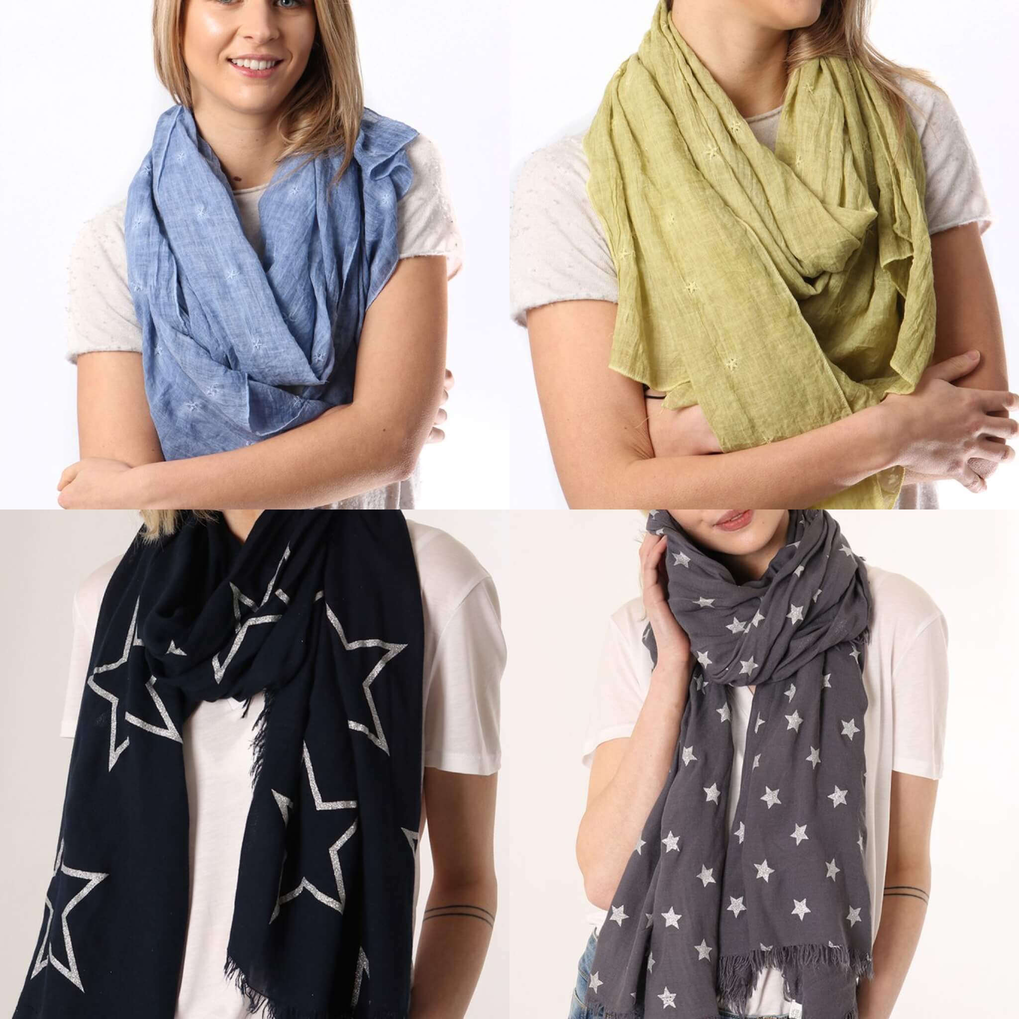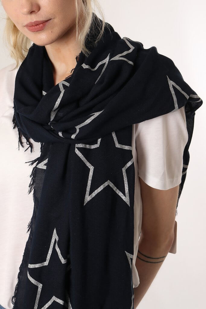 Scarf With Star Designs from a stunning collection of unique scarves for women. The Company was founded in 2006, as a small shop in Notting Hill London, with aspirations to produce stylish, good quality scarves with unrivalled popularity. Simply beautiful affordable scarves for every season.
